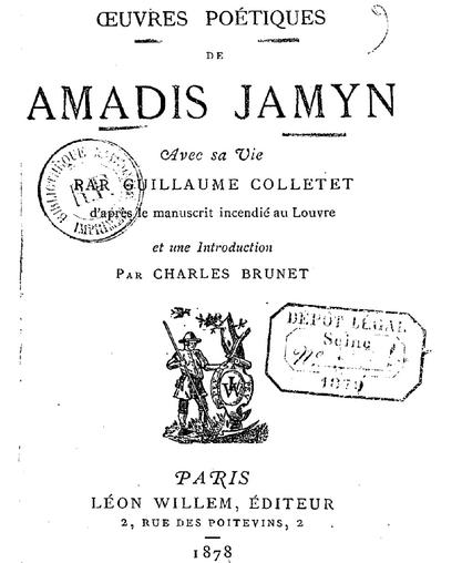 Amadis Jamyn (Chaource, 1540 - même ville, 1593) est un poète champenois. Fils de Claude-Nicolas Jamin et de Marie Chemelet, il était proche du cercle littéraire de la Pléiade. Ami de Pierre de Ronsard, il traduisit en vers français les 13 derniers livres de l'Iliade d'Homère (publié en 1580).