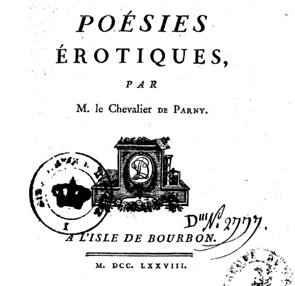 Poésies érotiques Auteur : Évariste de Parny Date de publication : 1778 - Poésies contenues dans ce recueil Titre Publicité