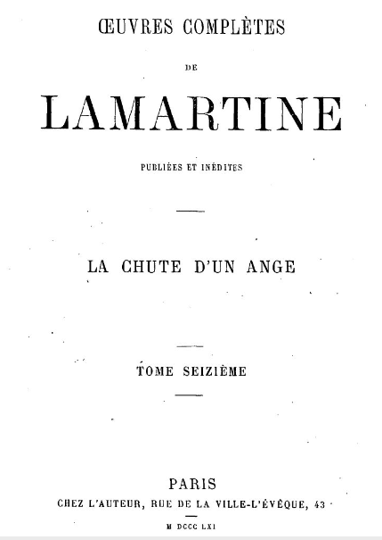 La chute d'un ange Auteur : Alphonse de Lamartine Date de publication : 1861 - Poésies contenues dans ce recueil Titre Acheter ce recueil Publicité